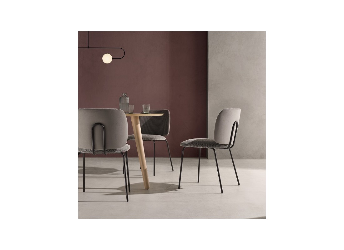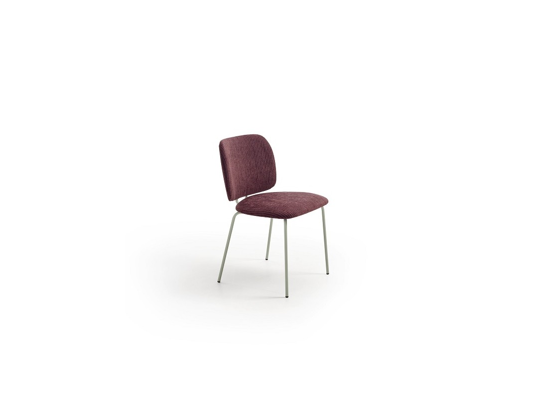 Silla de línea moderna con estructura de metal , asiento y respaldo tapizado.